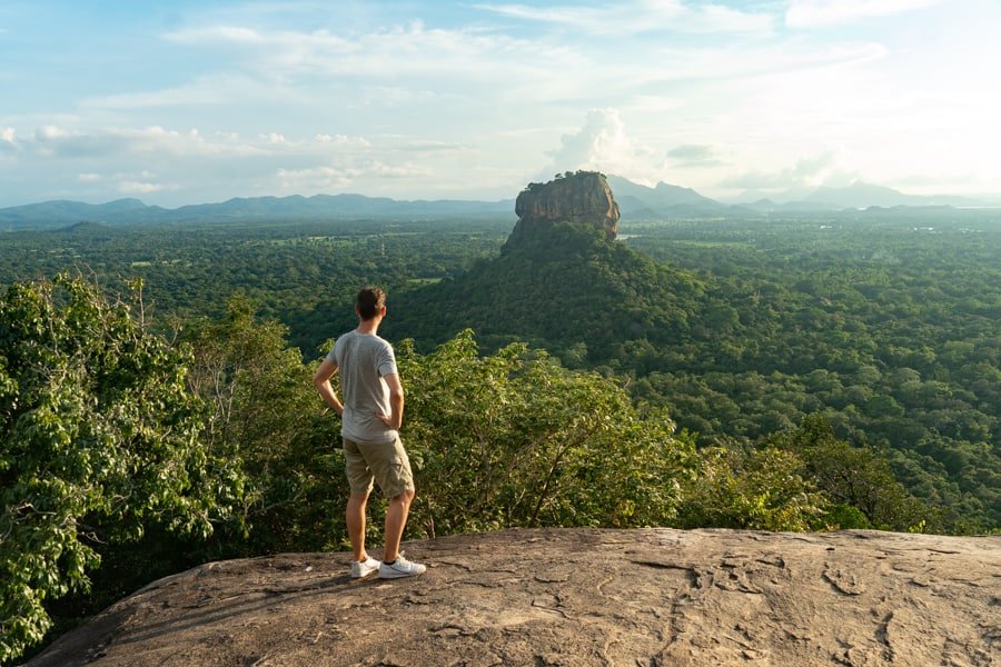 De rots in de verte is de Pidurangala Rock
