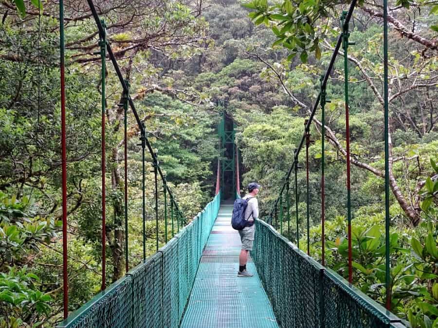 Voorafgaand aan ons bezoek aan het Santa Elena Reserve bezochten wij de hanging bridges van het Selvatura Park. Ontzettend toeristisch, maar zeker wel de moeite waard. Ik raad aan om eerst de hanging bridges te bezoeken (zo vroeg mogelijk!) en daarna een bezoek te brengen aan het Santa Elena Reserve. Deze 2 plekken liggen op loopafstand van elkaar. Klik hier voor meer informatie over ziplinen en de hangende bruggen van Monteverde.